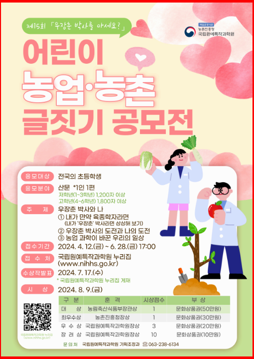 미래 농업과학자의 꿈을 꾸는 어린이를 위한 ‘어린이 글짓기 공모전’에 참여하세요!