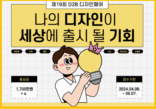 신제품에 대한 디자인 아이디어가 필요한 기업에 우수한 디자인 발굴과 사업화를 지원하는 ‘2024 디투비(D2B)* 디자인 박람회’에 참여할 기업 모집 및 디자이너들의 디자인 출품작을 모집합니다.