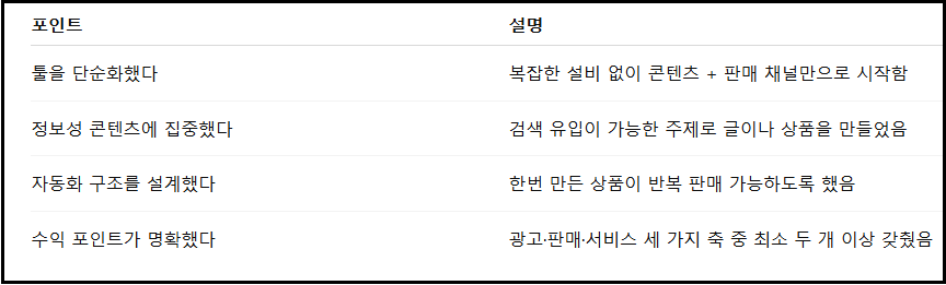 이 사례들을 참고하여 나만의 수익모델 설계에 적용해보시는 것을 추천드립니다.