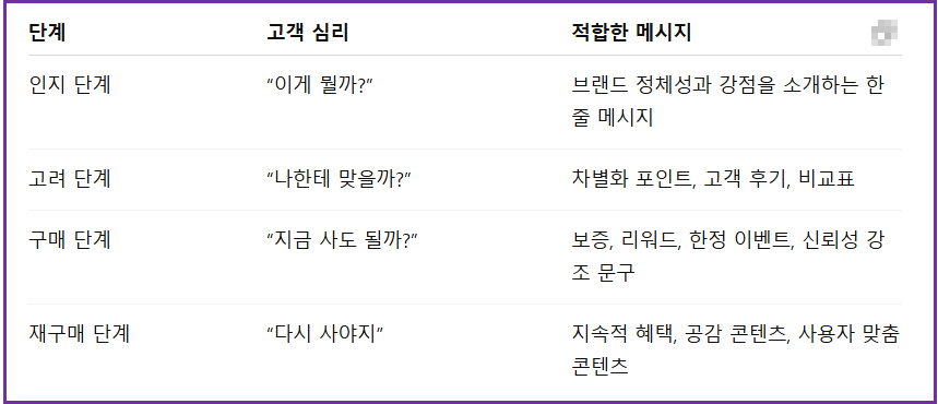 ✅ 1. 고객 여정(Customer Journey)에 맞춰 메시지를 배치하라