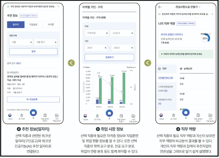 사용자의 직무 역량과 취업 시장 정보를 AI로 분석해 가장 적합한 직업과 훈련 과정을 추천하며, 이 모든 과정을 모바일로 간편하게 이용할 수 있습니다.