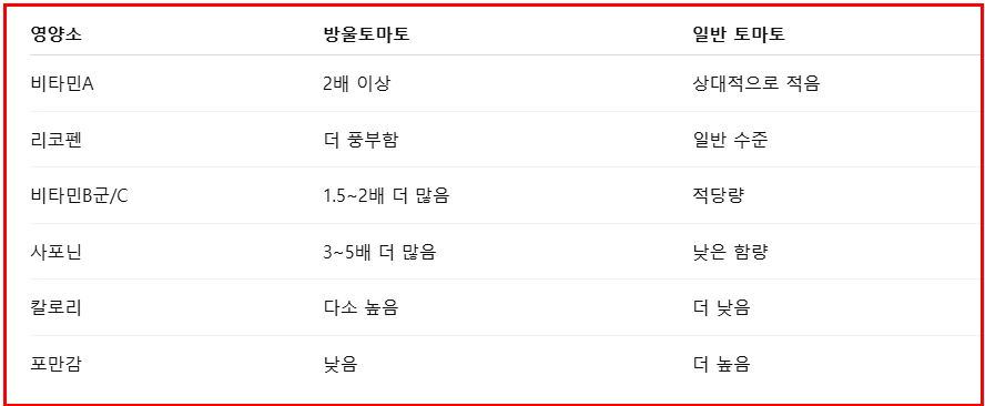중심 키워드인 ‘방울토마토 vs 일반 토마토’를 잘 이해하고, 상황에 맞게 섭취해 보시기 바랍니다.