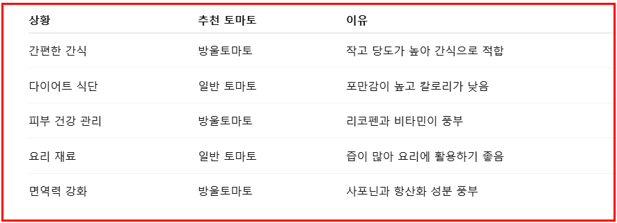 📌 상황별 추천: 내게 맞는 토마토는?