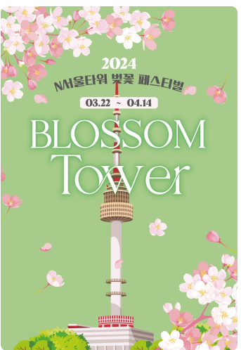 N서울타워는 연인들이 남산에서 여유로운 휴식과 함께 사랑을 꽃피울 수 있는 'Blossom TOWER' 페스티벌을 개최합니다. 서울 도심보다 온도가 2~3도가량 낮아 서울에서 가장 오랫동안 벚꽃을 관람할 수 있는 N서울타워는, 한눈에 담기에 벅찬 아름다운 서울 도심의 봄향기를 선물합니다.