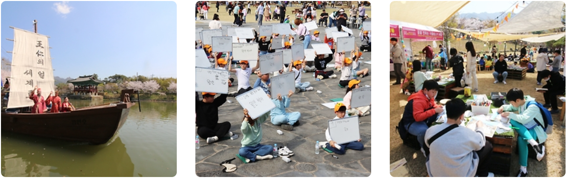 봄꽃 토크콘서트, 이순신 및 수군문화 프로그램, 각종 공연 및 체험프로그램 등 다채로운 볼거리와 먹거리가 있습니다.