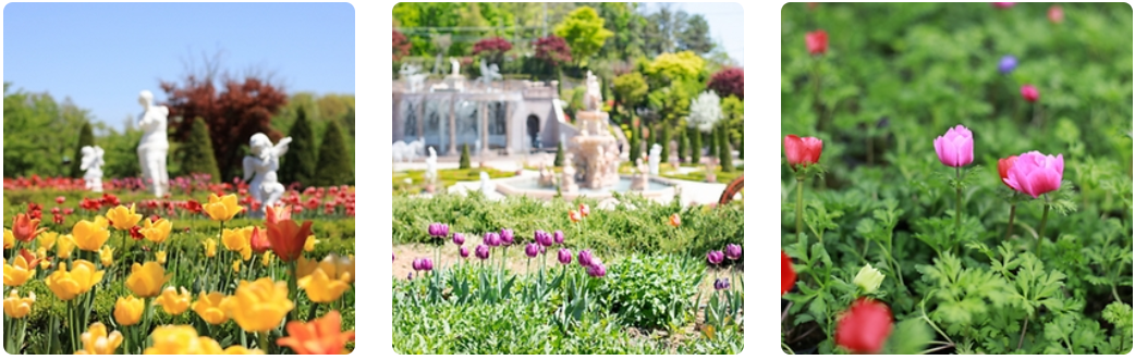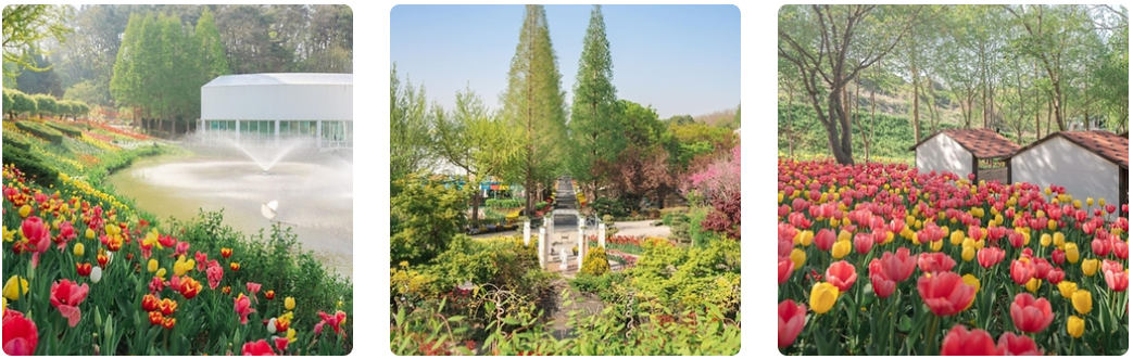 2만 평의 부지에 그리스 아테네 신전을 모티브로 한 23개 유럽풍 테마정원 곳곳을 장식하는 대표 봄꽃, 수선화와 튤립, 벚꽃부터 봄의 마지막에 얼굴을 비추기 시작하는 장미를 비롯한 수많은 식물들이 있으며, 해가 진 후에는 '별빛이 흐르는 정원'을 테마로 1,200만 개의 조명과 봄꽃들이 어우러져 신비로운 야경을 감상할 수 있어 낮과는 전혀 다른 화려한 풍경을 만나볼 수 있습니다.