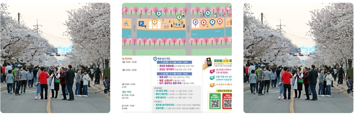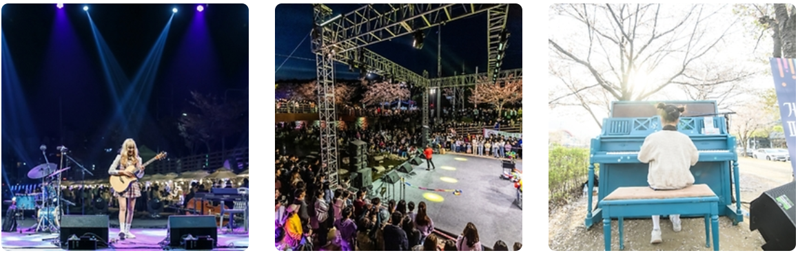 - 공연 : 벚꽃 놀이단, 거리 버스킹, 마술 공연