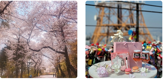 '사랑의 자물쇠'에 봉인된 사랑의 이야기로 가득한 N서울타워에서는 연인들을 위한 '커플 벚꽃 패키지' 상품과 더불어 와인과 벚꽃 그리고 음악이 한데 어우러지는 와인페어에서 다양한 게임과 SNS 인증 이벤트 등 다채로운 콘텐츠들로 가득 차 있습니다.