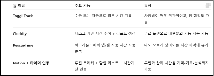 ✅ 핵심 4: 디지털 툴을 활용한 시간 추적
