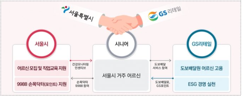 이외에도 서울시와 GS리테일은 어르신 도보배달원뿐만 아니라 시니어 편의점 창업, 아르바이트 채용 채용 지원 등 앞으로 어르신 민간 일자리 확보를 위해 다각적으로 협력해 나갈 계획입니다.