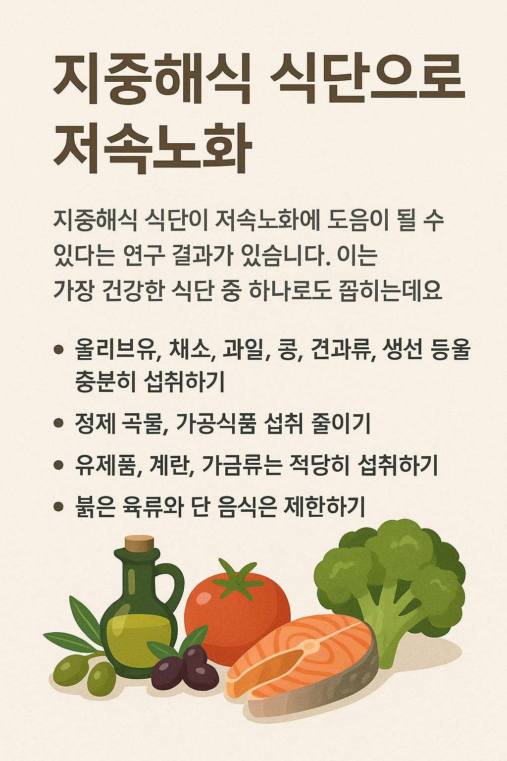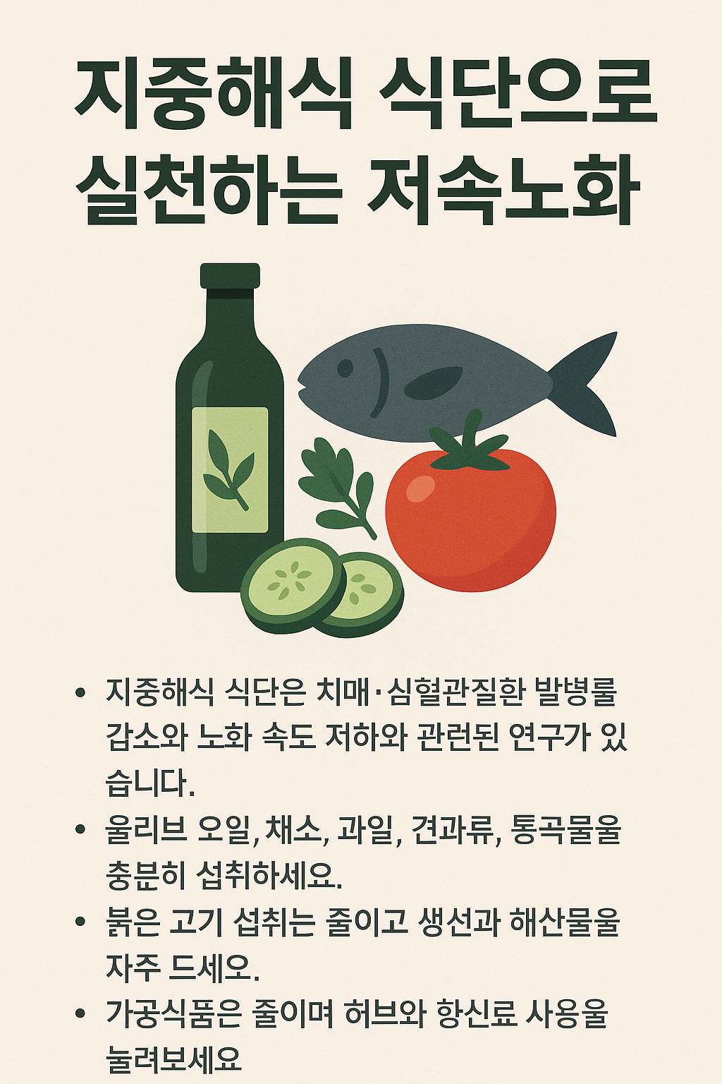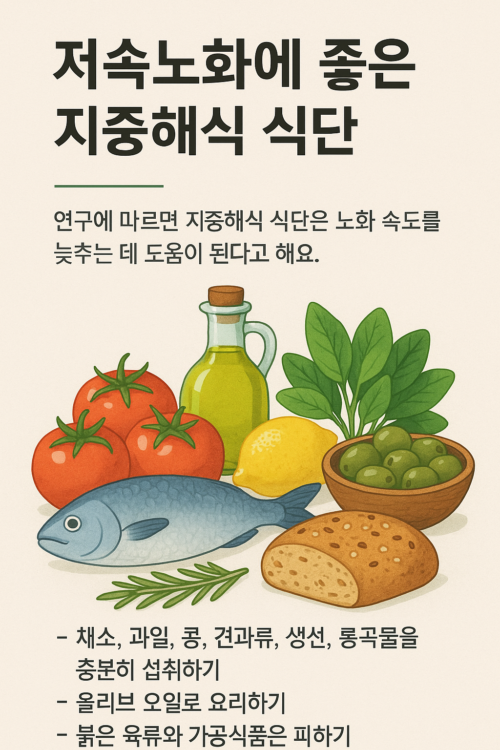 지중해식 식단과 저속노화의 관계 🫒🍅🐟