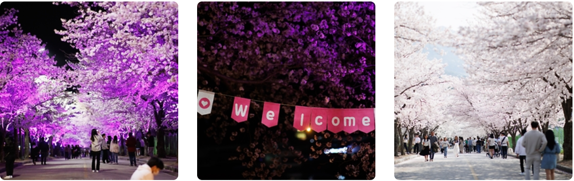 벚꽃놀이 중 최고인 진해군항제가 개최되는 춘삼월은 우리나라 상춘객들을 잔잔한 바다를 품은 군항도시로 모여들게 하며 36만그루 왕벚나무의 새하얀 꽃송이들이 일제히 꽃망울을 터뜨리면 세계최대 벚꽃도시에서 봄날의 추억을 남기려 포토홀릭에 빠지는 사람들과 꽃비가 흩날리는 봄의 향연에 취한 사람들이 한데 어우러져 출렁이는 모습은 축제의 장관을 이룹니다.