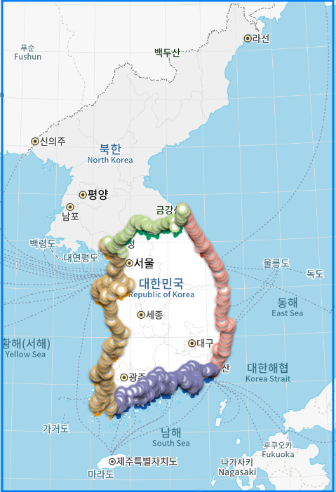 코리아둘레길은 2009년부터 시작된 대규모 프로젝트로, 대한민국의 동해안, 남해안, 서해안 그리고 DMZ를 잇는 초장거리 걷기 코스입니다.