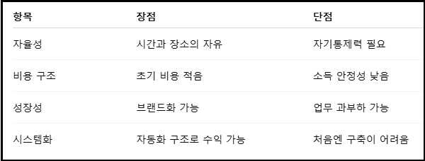 처음부터 법인 설립이나 오프라인 공간 임대 등 부담되는 선택을 피하고, 디지털 기반으로 작게 시작하는 것이 리스크를 줄이고 지속 가능성을 높이는 열쇠입니다.