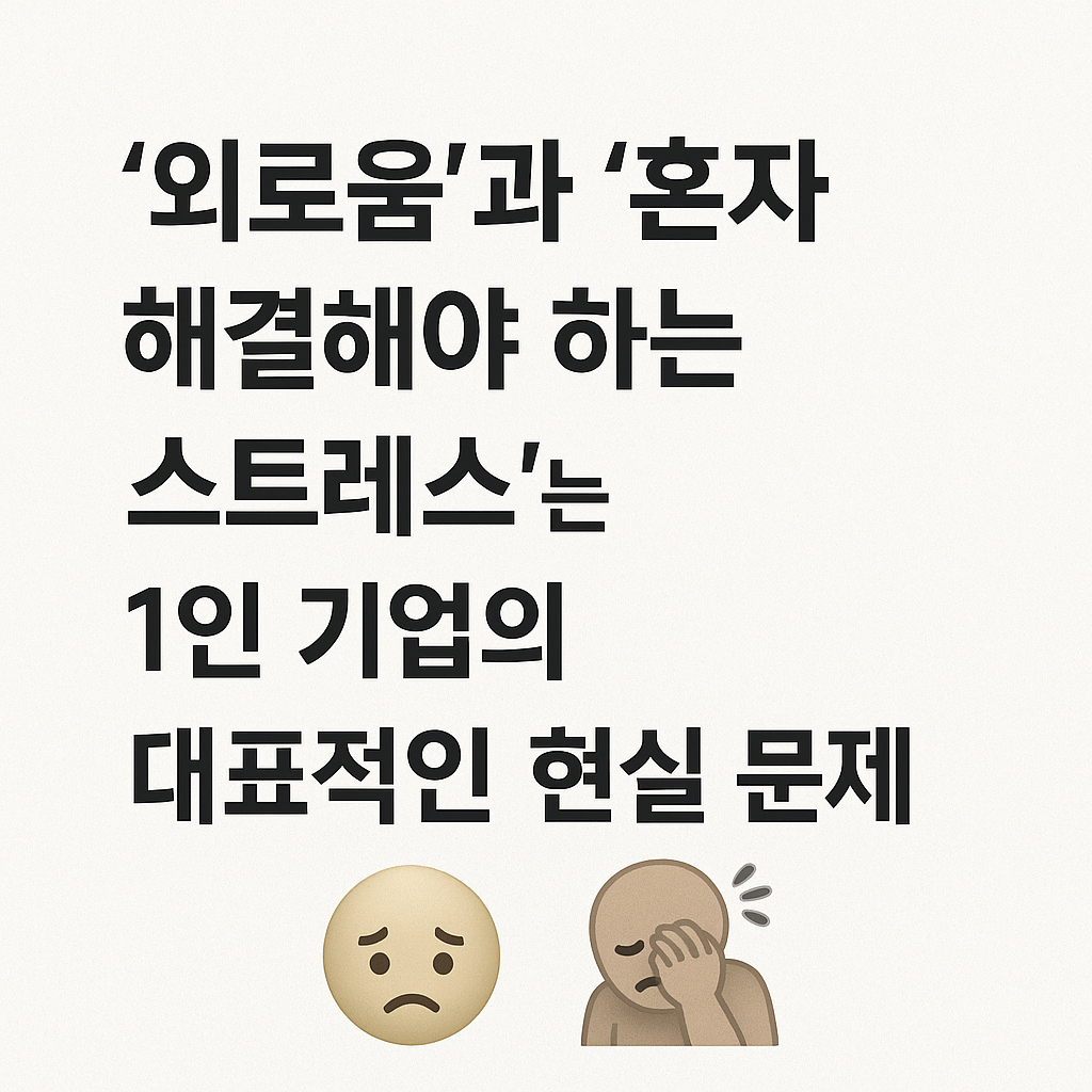 특히 ‘외로움’과 ‘혼자 해결해야 하는 스트레스’는 1인 기업의 대표적인 현실 문제입니다.