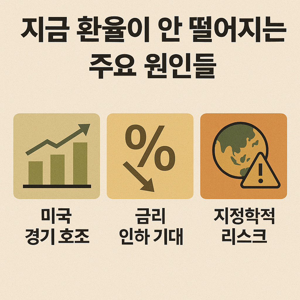 환율이 쉽게 떨어지지 않는 이유를 정리하면 다음과 같은 핵심 요인들이 작동하고 있습니다:
