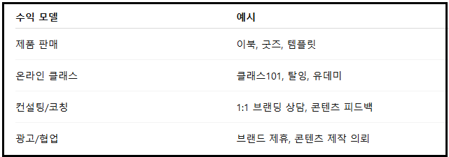 1인 브랜드 수익화는 크게 4가지로 나눌 수 있습니다.