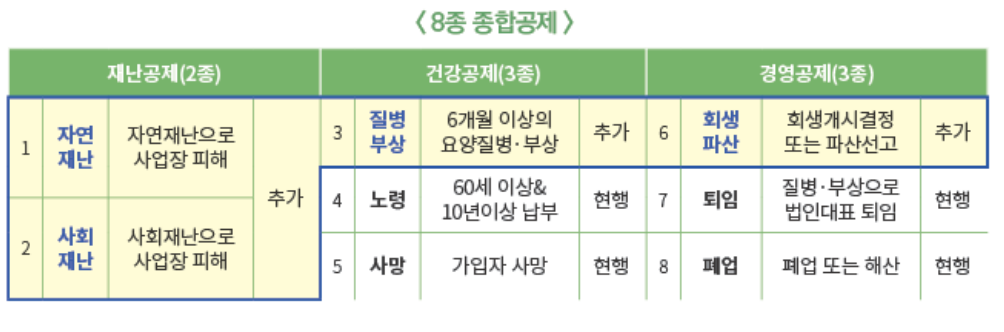*(현행) 폐업, 사망, 퇴임, 노령 → (추가) 자연재난, 사회재난, 질병부상, 회생파산 ​
