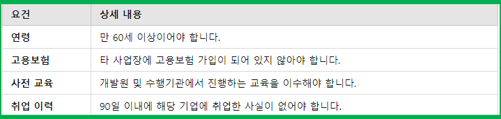 시니어 인턴십 제도의 지원 요건