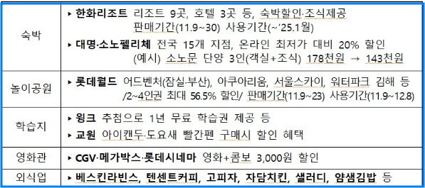 올해는 문화와 레저 분야에서도 할인 혜택이 확대됩니다. 영화관뿐만 아니라 숙박업계와 놀이공원 등이 신규로 참여해 소비자에게 폭넓은 선택지를 제공합니다.