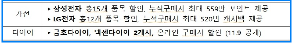 이 외에도 삼성전자와 LG전자는 TV, 냉장고, 세탁기, 오디오 등 가전 품목의 할인폭을 확대해 연말 구매를 계획하는 소비자들에게 큰 혜택을 제공할 예정입니다.