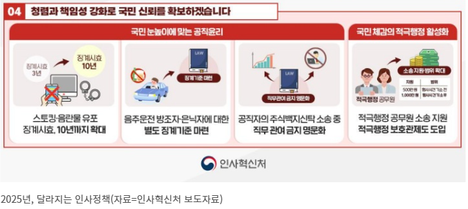 이를 통해 공무원들이 더욱 안정적인 환경에서 일하며 국민들에게 양질의 서비스를 제공할 수 있을 것으로 기대됩니다. 향후 이러한 정책들이 성공적으로 시행되어 공직사회가 더욱 신뢰받고 효율적으로 운영될 수 있기를 바랍니다.
