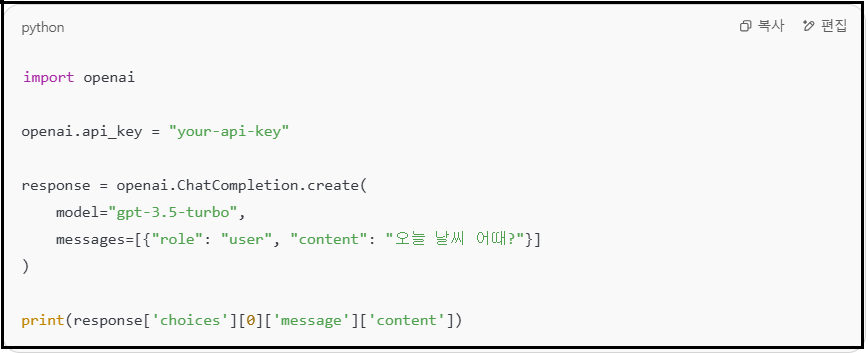 - 다양한 모델 옵션 (gpt-3.5-turbo, gpt-4, gpt-4o 등)
