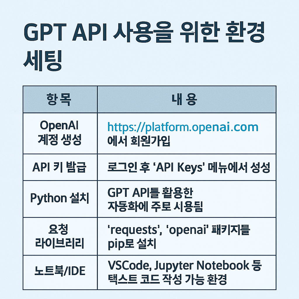 이 기능을 구현하기 위한 핵심 도구가 바로 OpenAI의 GPT API입니다.