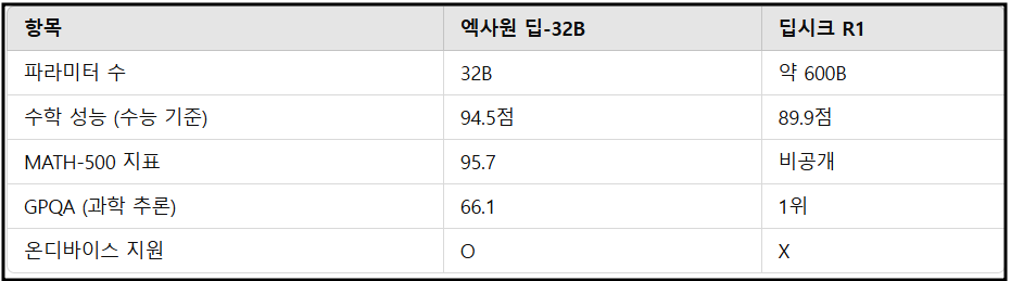 수학과 과학 등 특정 분야에서 딥시크를 뛰어넘는 성과를 보여주었고, 온디바이스 AI까지 개발하며 실용성도 입증했습니다.