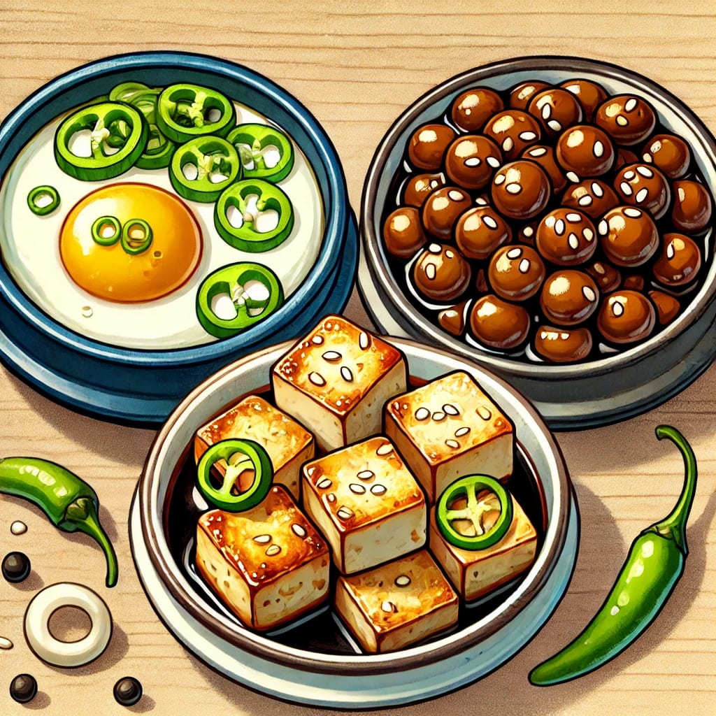 대표적인 단백질 반찬으로는 계란찜, 두부조림, 콩자반 등이 있으며, 따뜻한 국으로는 미역국, 뭇국, 된장국이 좋습니다.