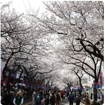 벚꽃놀이 중 최고인 진해군항제가 개최되는 춘삼월은 우리나라 상춘객들을 잔잔한 바다를 품은 군항도시로 모여들게 하며 36만그루 왕벚나무의 새하얀 꽃송이들이 일제히 꽃망울을 터뜨리면 세계최대 벚꽃도시에서 봄날의 추억을 남기려 포토홀릭에 빠지는 사람들과 꽃비가 흩날리는 봄의 향연에 취한 사람들이 한데 어우러져 출렁이는 모습은 축제의 장관을 이룹니다.