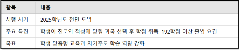 기존의 획일적인 교육과정을 탈피해 학생들이 직접 과목을 선택하고 학점을 취득해 졸업 요건을 충족하는 방식입니다 .